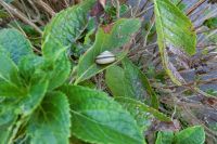 あじさいの葉に隠れて、冬ごもりの準備です。
