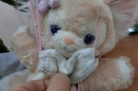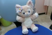 4才の女の子は、ぬいぐるみにマスクをして登場します。