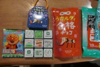 かんがるうっ子が、みんなからもらった沢山の合格お菓子