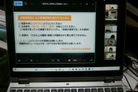 西区にあるもう一つの保育園とはWEBでつながれ、講義を始めます。
